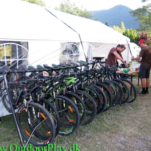Da der er mange højdemeter og en flere stræk på grusveje og lettere tekniske stier, vil vi anbefale en klassisk XC mountainbike eller en lettere allmountain cykel. Det kan være en hard tail eller fuld affjedret. Sæt et par kraftige dæk på, gerne helt op i 2,4″ tykkelse og så solide som muligt (meget gerne tubeless dæk sat op til tubeless).